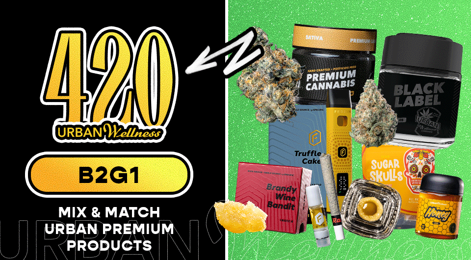 Buy 2 get 1 for $0.05 mix and match on all Urban Premium Products this 420 Weekend! Pay for the two most expensive